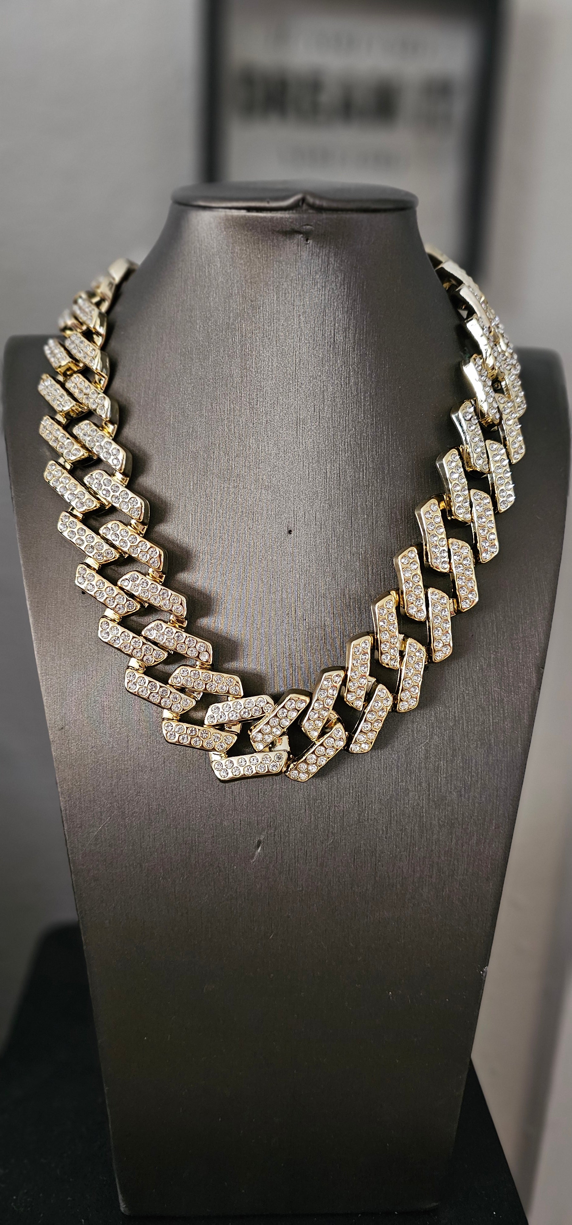 Make every look unforgettable with our Iced Cuban Link Statement Necklace, available in gold and silver. This bold, oversized chain features fully rhinestone-encrusted links that catch the light beautifully, giving you a luxurious high-end look without the high-end price.